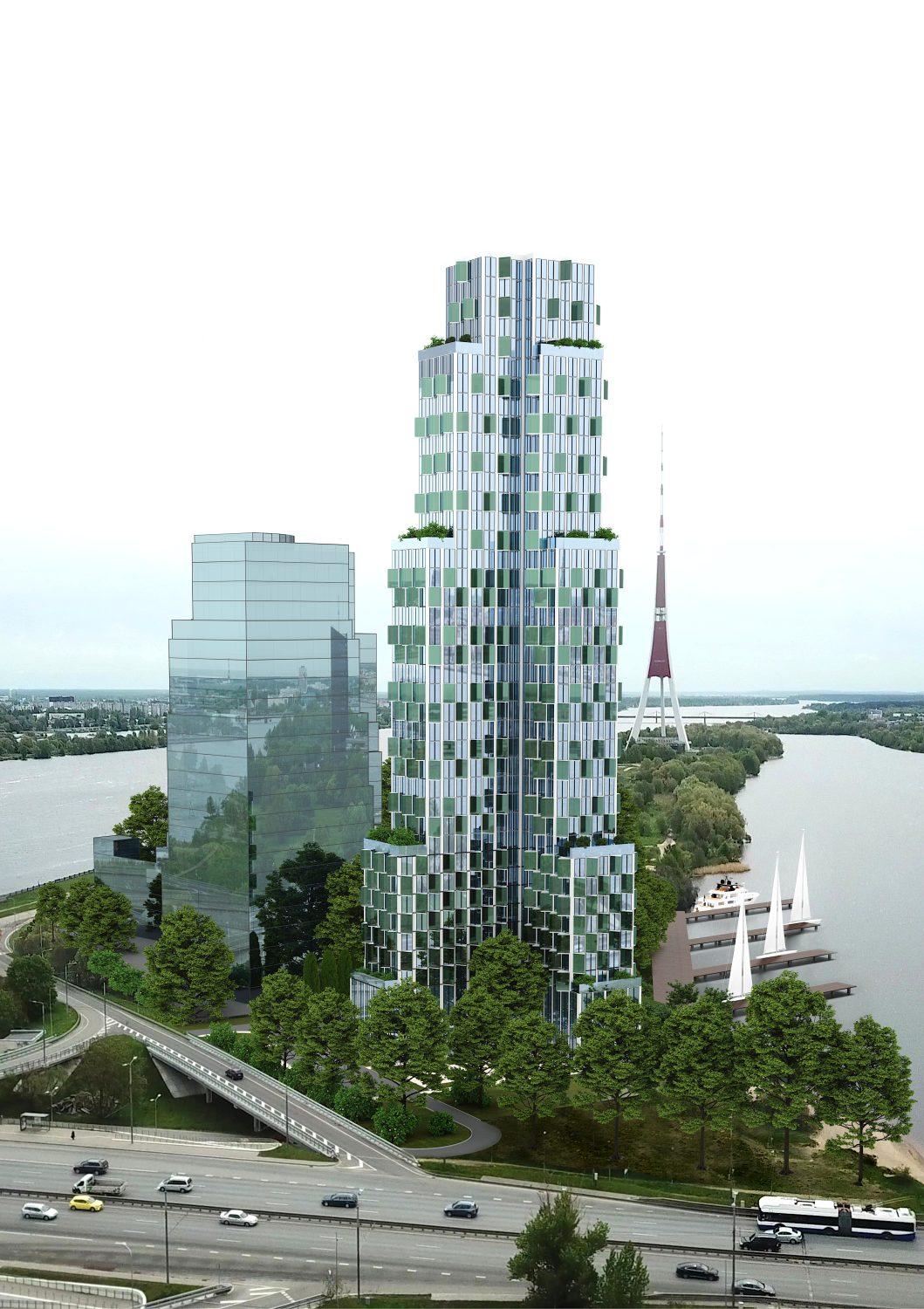 Darbu izpilde: 3D Vizualizāciju un fotomontāžu izstrāde izsludinātajam arhitektūras konkursam par teritorijas attīstību ar apartamentu viesnīcas jaunbūvi Zaķusalas krastmalā 21