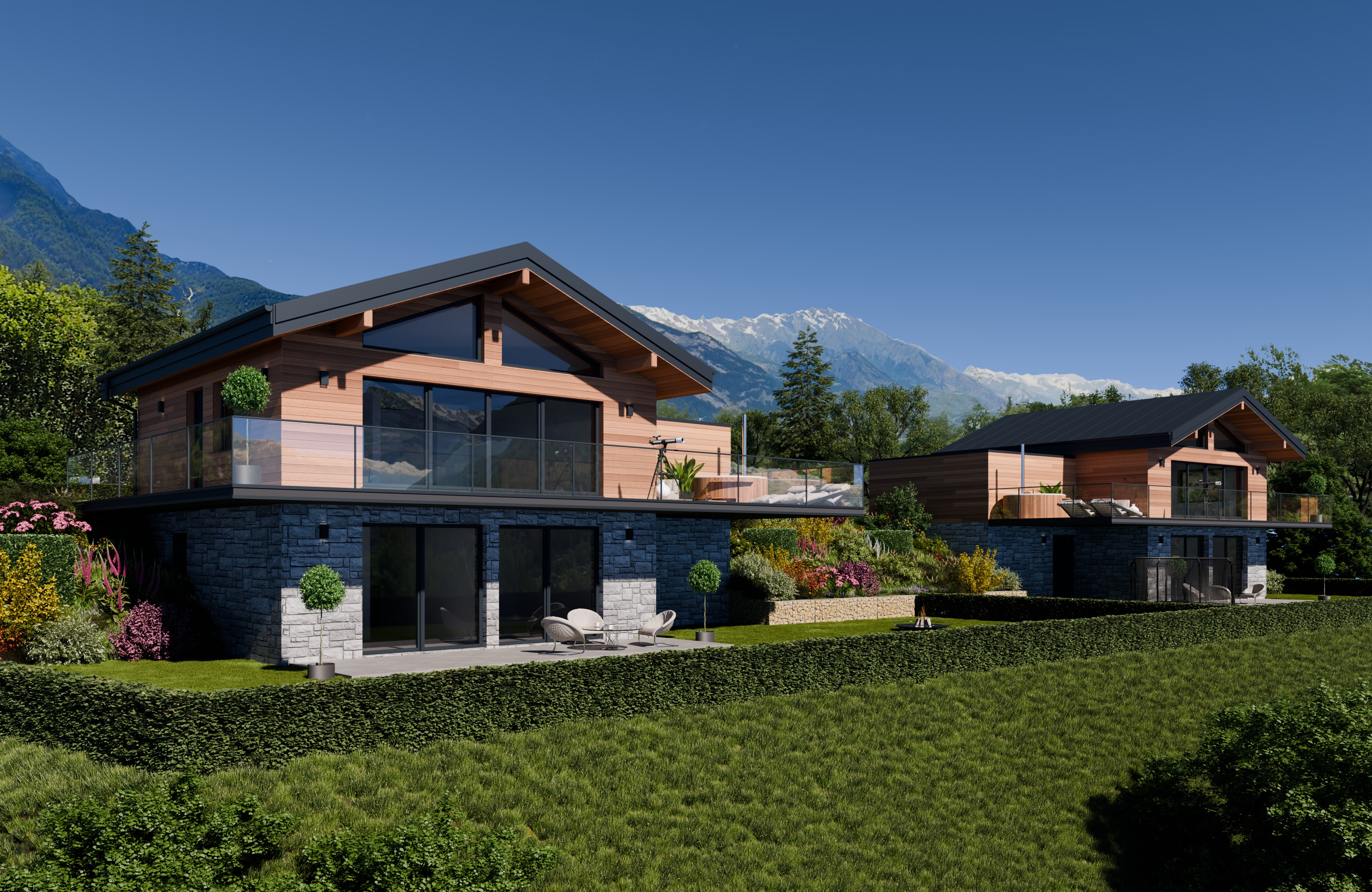 3D vizualizāciju izstrāde Saxon Chalet dzīvojamajām dvīņu mājām un tām pakārtotajās teritorijas labiekārtojumam.